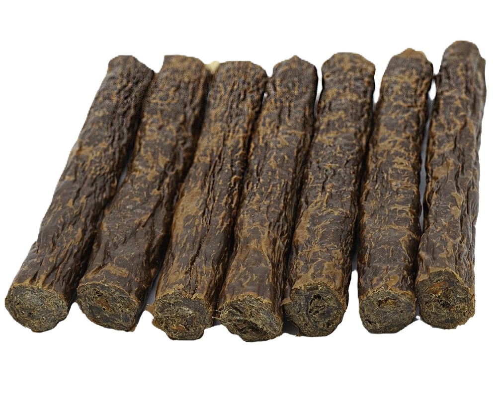- Naturbelassene Snacks aus natürlichem Trockenfleisch wie Dörrfleisch, Sehen oder Kopfhaut.